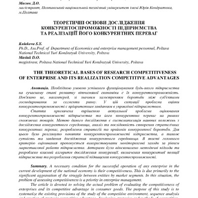 2018/01/12Теоретичні основи дослідження конкурентоспроможності підприємства та реалізації його конкурентних переваг