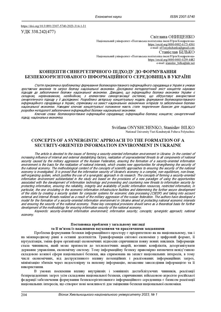Концепти синергетичного підходу до формування безпекоорієнтованого інформаційного середовища в Україні