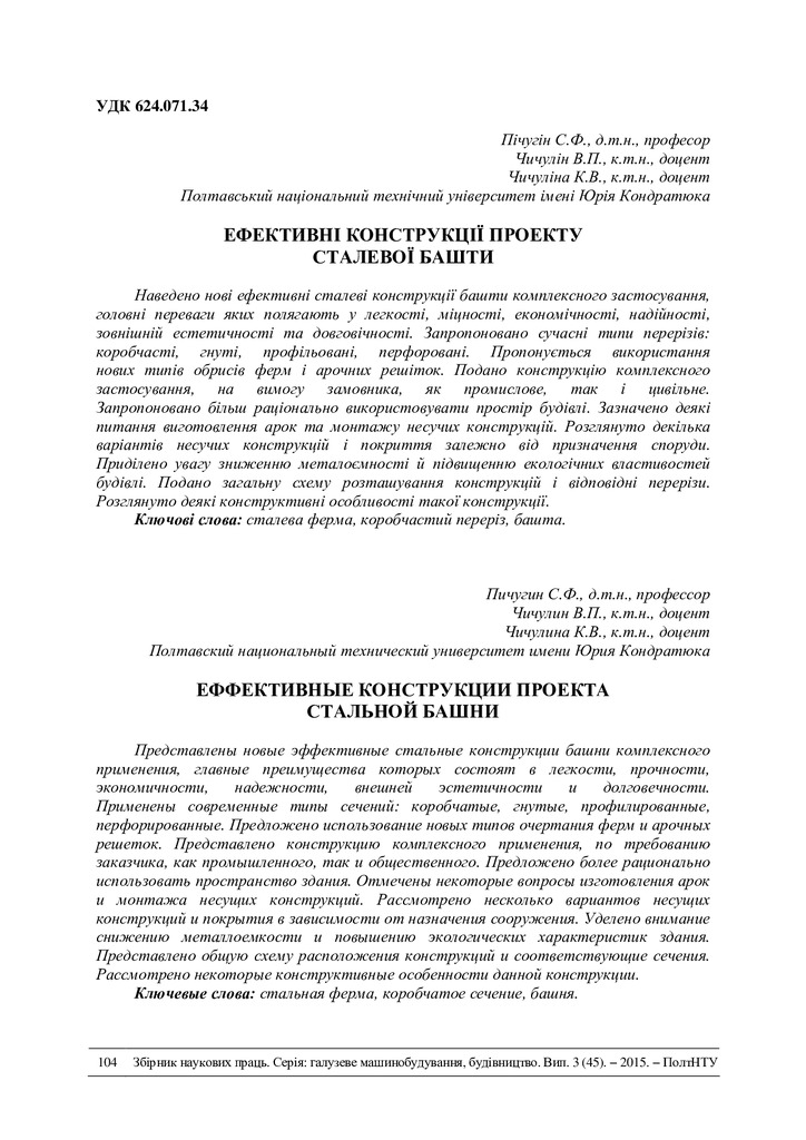 Стаття 2019/02/06Ефективні конструкції проекту сталевої башти