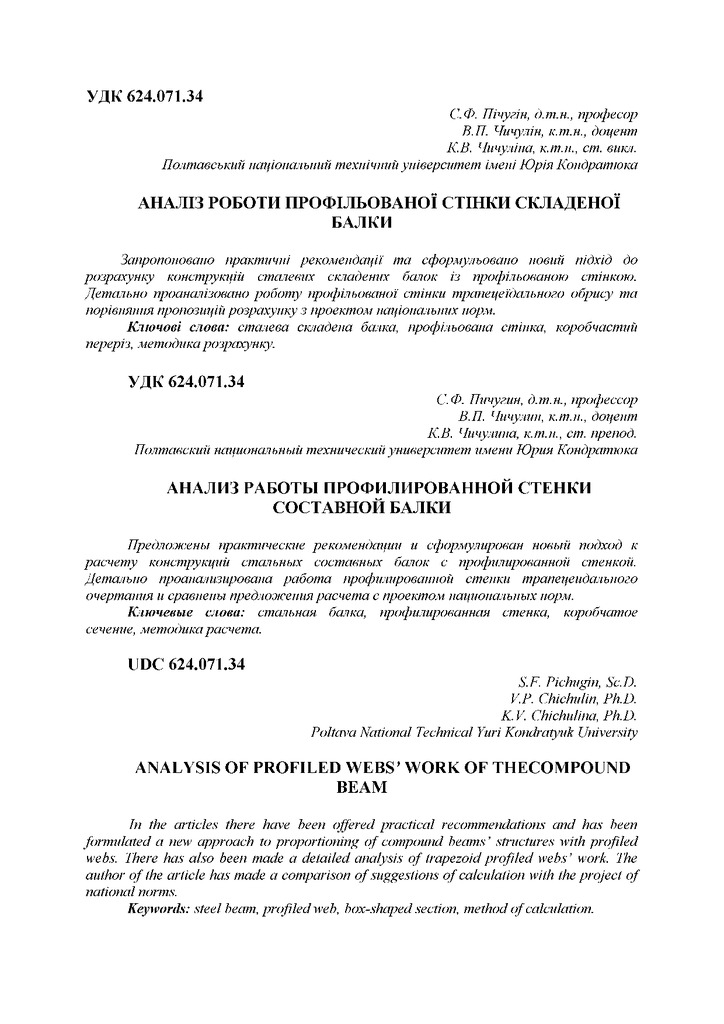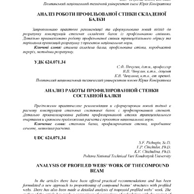Стаття 2019/02/15Аналіз роботи профільованої стінки складеної балки