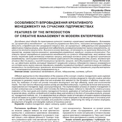 Стаття 2023/09/04Особливості впровадження креативного менеджменту на сучасних підприємствах