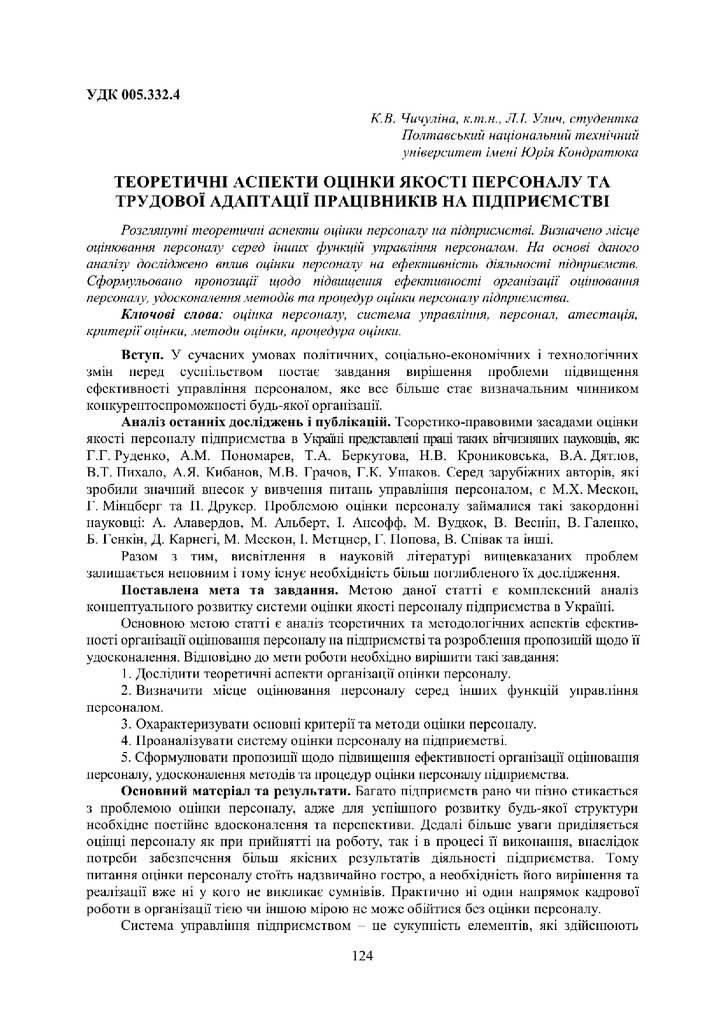 Теоретичні аспекти оцінки якості персоналу та трудової адаптації працівників на підприємстві