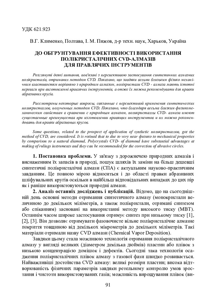 2020/03/03До обґрунтування ефективності використання полікристалічних CVD-алмазів для правлячих інструментів