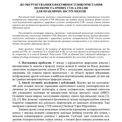 До обґрунтування ефективності використання полікристалічних CVD-алмазів для правлячих інструментів