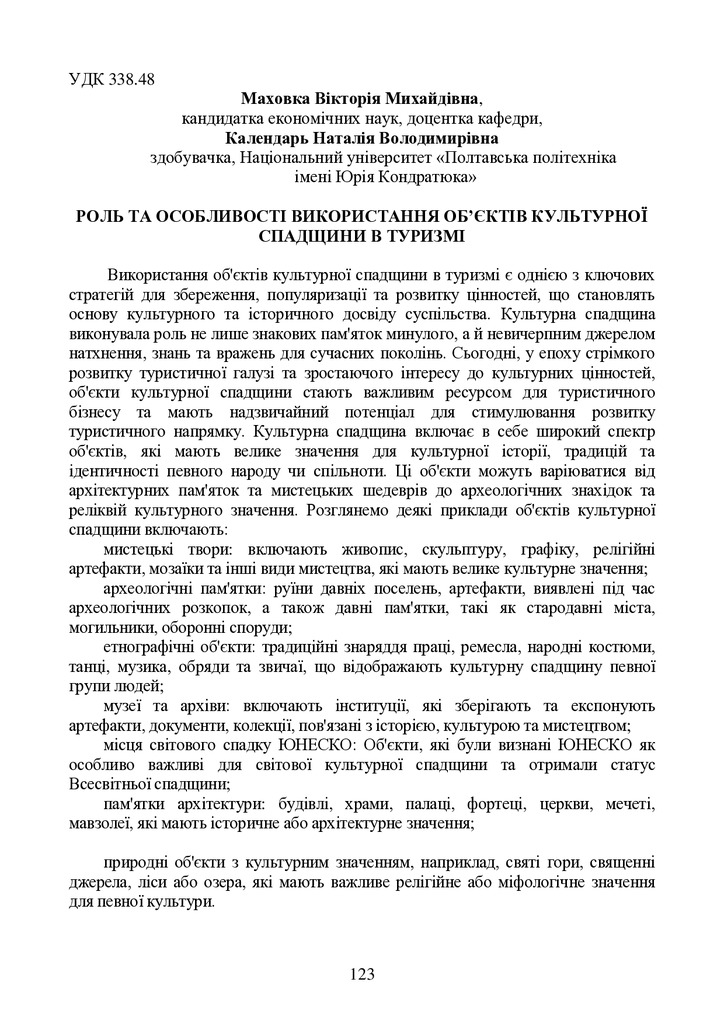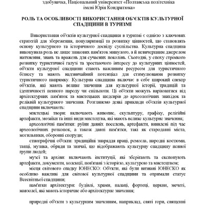 Роль та особливості використання об’єктів культурної спадщини в туризмі