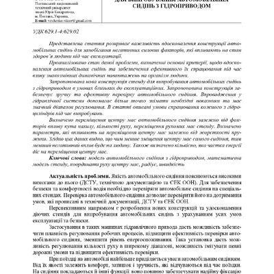 Представлена стаття розкриває важливість вдосконалення конструкції автомобільних сидінь для запобігання негативних силових факторів, які впливають на стан здоровʼя людини під час експлуатації. Проа...