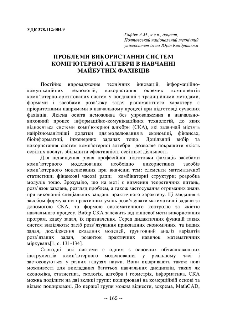 Проблеми використання систем комп'ютерної алгебри в навчанні майбутніх фахівців