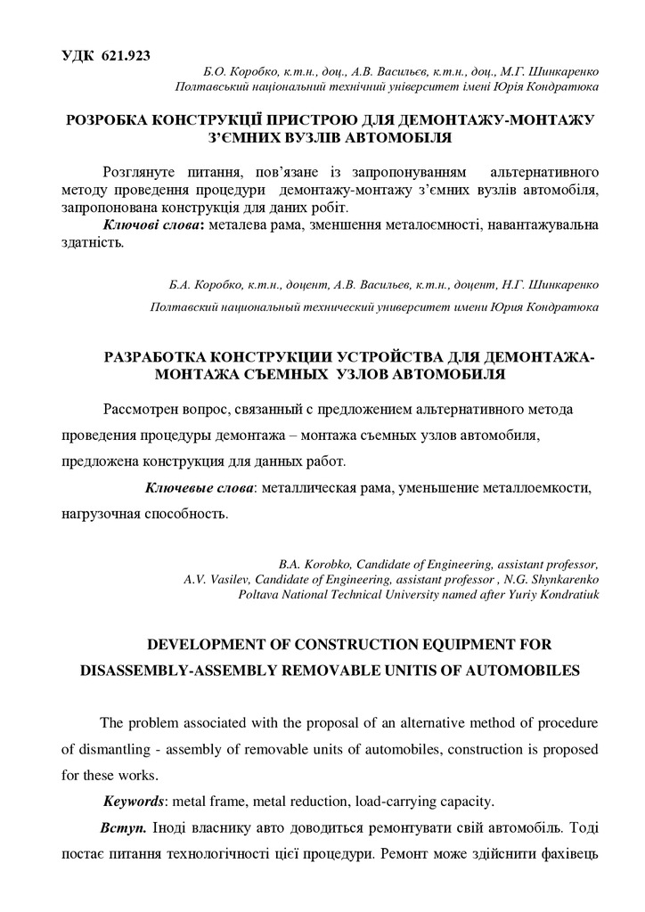 Розробка конструкції пристрою для демонтажу-монтажу з’ємних вузлів автомобіля