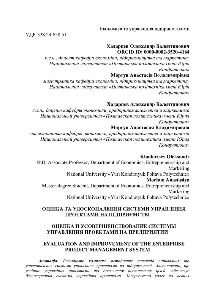 Розглянуто комплекс методичних аспектів оцінювання та удосконалення системи управління проектами ...