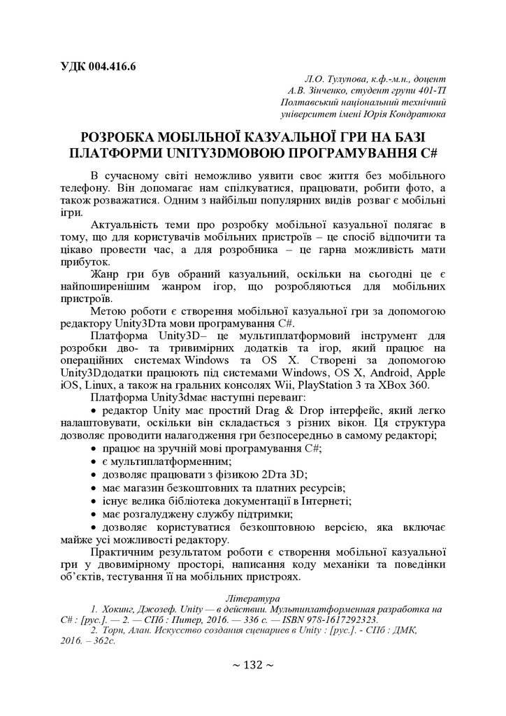 Стаття 2019/10/28Розробка комп’ютерої гри у жанрі «Аркада» на платформі Unity