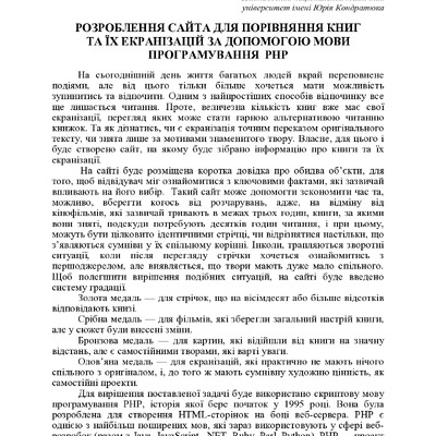 Виконано порівняльний аналіз із існуючими ресурсами-аналогами та вибрано технології розробки, так...