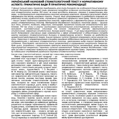 2025/09/24Український науковий стоматологічний текст у нормативному аспекті: граматичні вади й практичні рекомендації