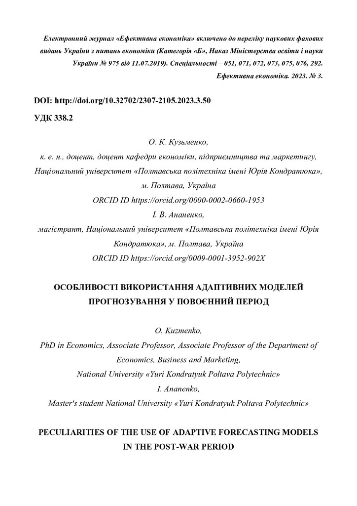 Особливості використання адаптивних моделей прогнозування у повоєнний період