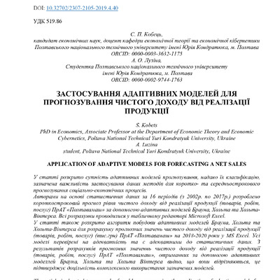 Стаття 2023/06/06Застосування адаптивних моделей для прогнозування чистого доходу від реалізації продукції