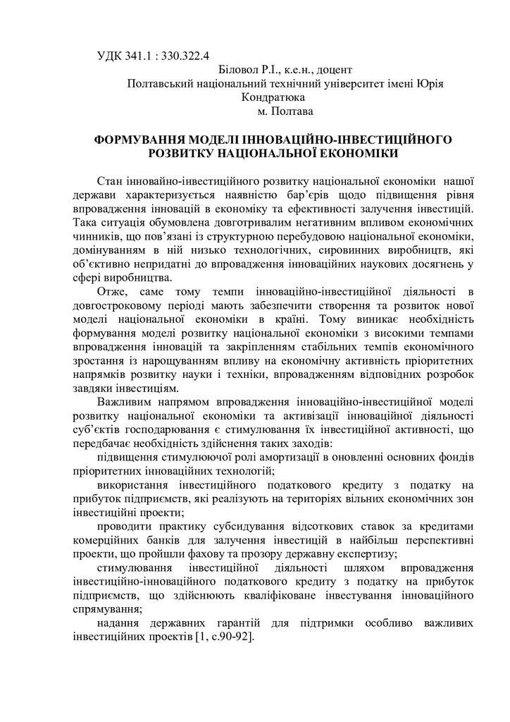 Формування моделі інноваційно-інвестиційного розвитку національної економіки