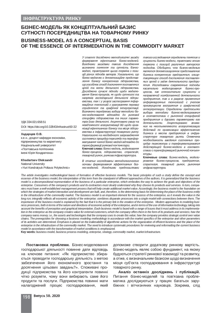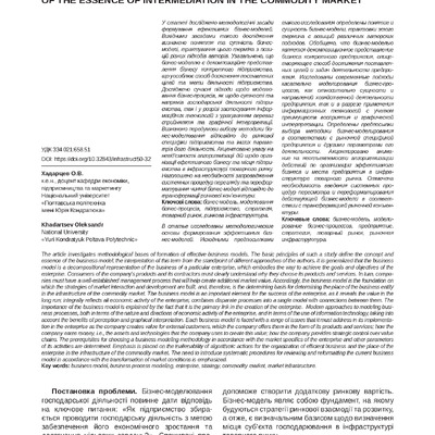 Бізнес-модель як концептуальний базис сутності посередництва на товарному ринку