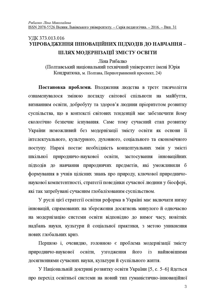 Упровадження інноваційних підходів до навчання - шлях модернізації змісту освіти