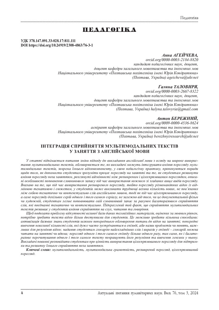 2024/10/31Інтеграція сприйняття мультимодальних текстів у заняття з англійської мови