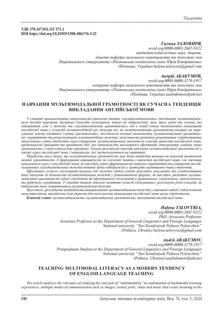 2024/12/23Навчання мультимодальної грамотності як сучасна тенденція викладання англійської мови