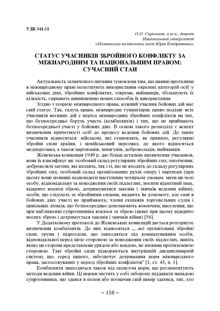 Статус учасників збройного конфлікту за міжнародним та національним правом: сучасний стан