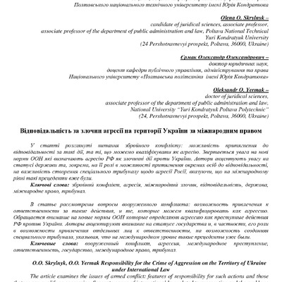 У статті розглянуті питання збройного конфлікту: можливість притягнення до відповідальності за та...