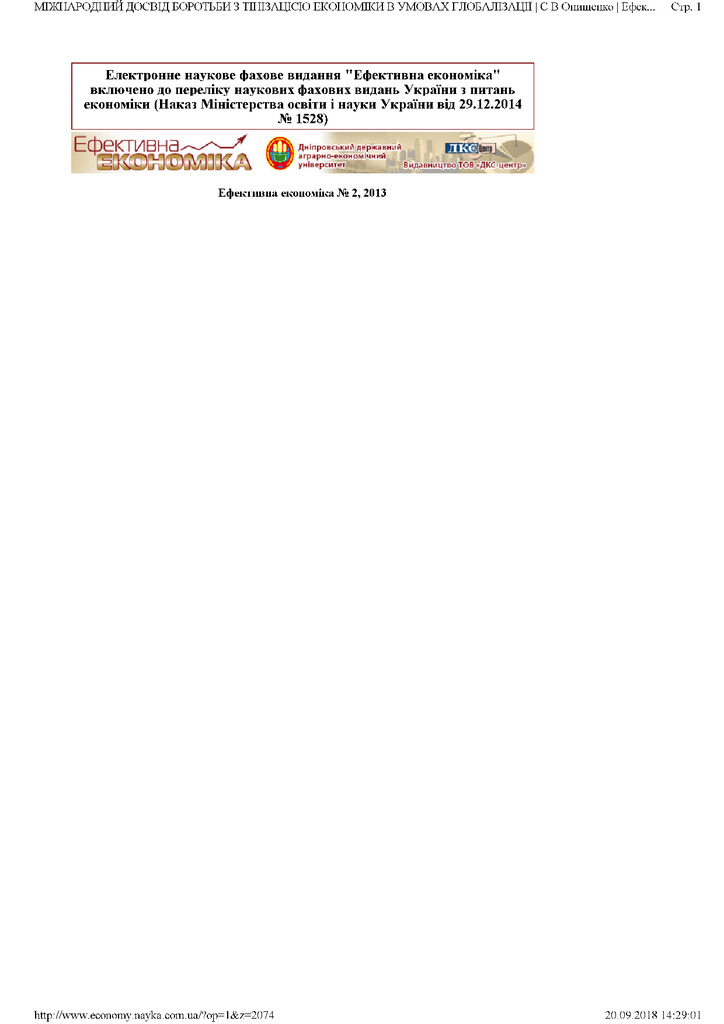 2019/02/12Міжнародний досвід боротьби з тінізацією економіки в умовах глобалізації