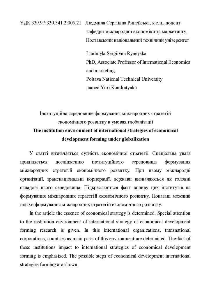 Стаття 2018/04/02Інституційне середовище формування міжнародних стратегій економічного розвитку в умовах глобалізації