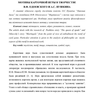 Стаття 2017/10/18Мотивы карточной игры в творчестве В.Ф. Одоевского и А.С. Пушкина