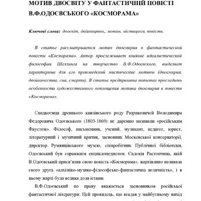 Мотив двосвіту у фантастичній повісті В.Ф. Одоєвського «Косморама»