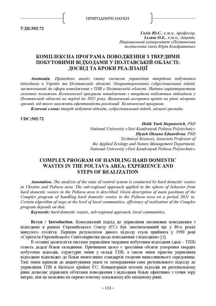 Стаття 2025/01/21Комплексна програма поводження з твердими побутовими відходами у Полтавській області: досвід та кроки реалізації