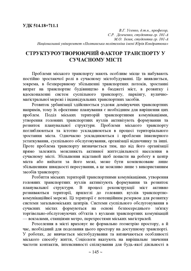 Структуроутворюючий фактор транспорту у сучасному місті