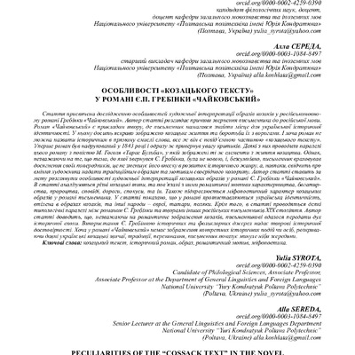 Стаття 2023/10/24Особливості «козацького тексту» у романі Є.П. Гребінки «Чайковський»
