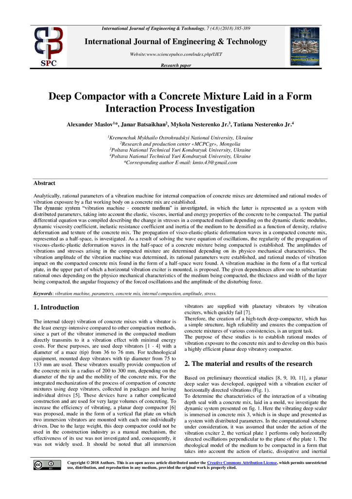 Стаття 2020/07/27Deep compactor with a concrete mixture laid in a form interaction process investigation