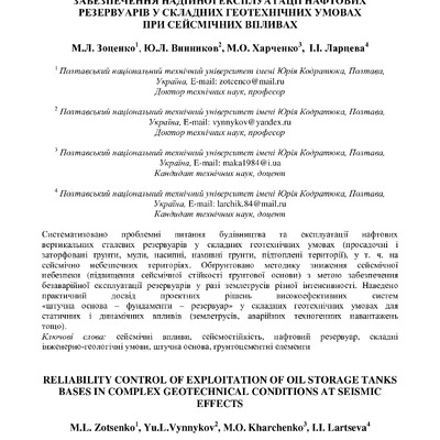 Забезпечення надійної експлуатації нафтових резервуарів у складних геотехнічних умовах при сейсмічних впливах