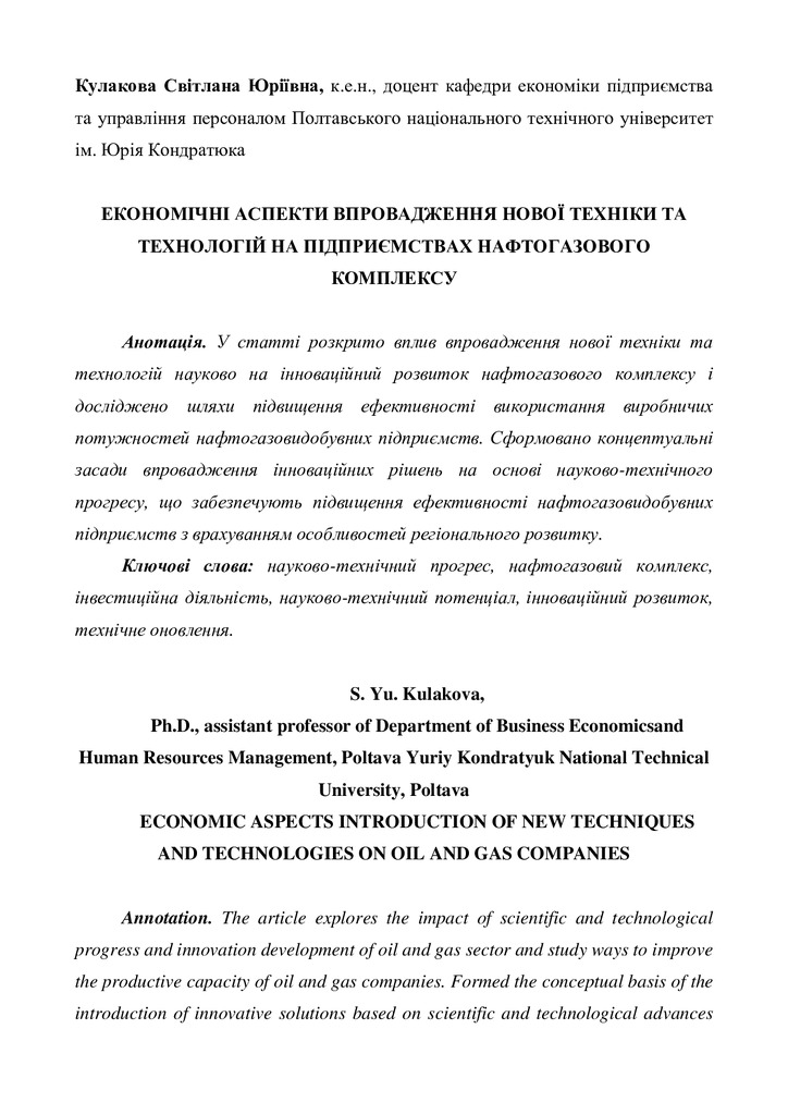 Стаття 2017/12/19Економічні аспекти впровадження нової техніки та технологій на підприємствах нафтогазового комплексу
