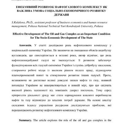 Стаття 2018/04/28Ефективний розвиток нафтогазового комплексу як важлива умова соціально-економічного розвитку держави