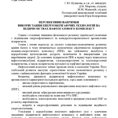 Перспективні напрямки використання енергозберігаючих технологій на підприємствах нафтогазового комплексу