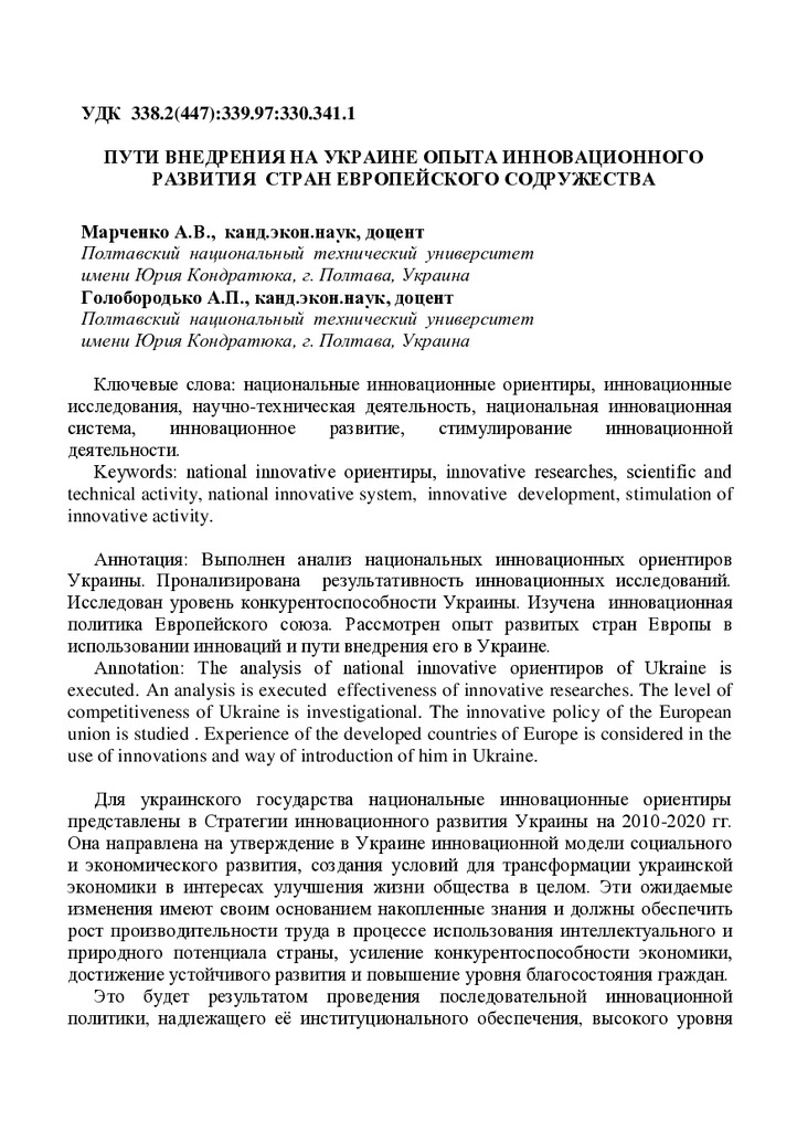 Пути внедрения на Украине опыта инновационного развития стран Европейского Содружества