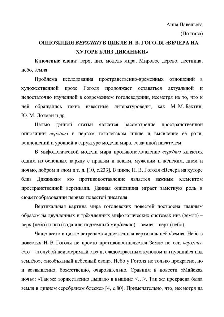 Оппозиция верх/низ в цикле Н. В. Гоголя «Вечера на хуторе близ Диканьки»