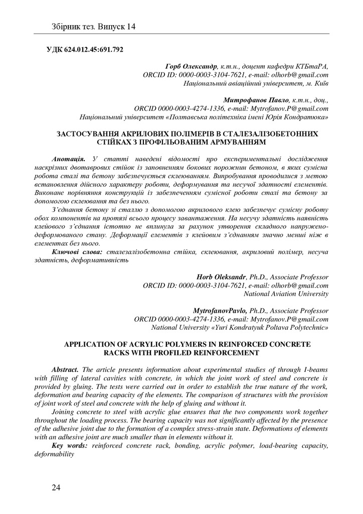 Стаття 2023/06/21Застосування акрилових полімерів в сталезалізобетонних стійках з профільованим армуванням