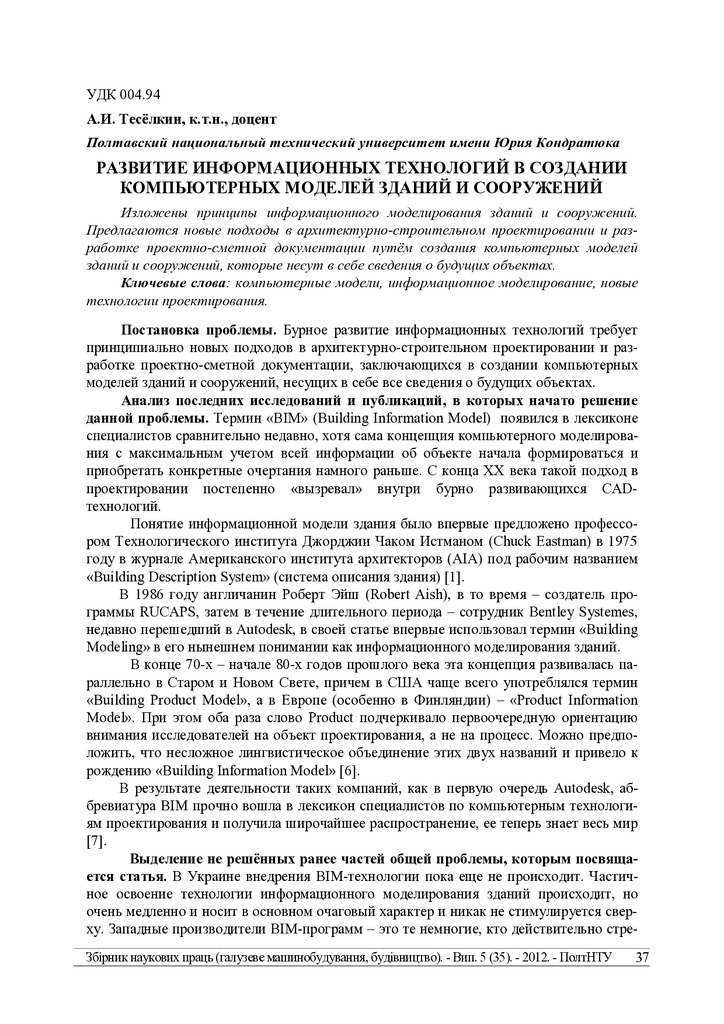 Изложены принципы информационного моделирования зданий и сооружений. Предлагаются новые подходы в...