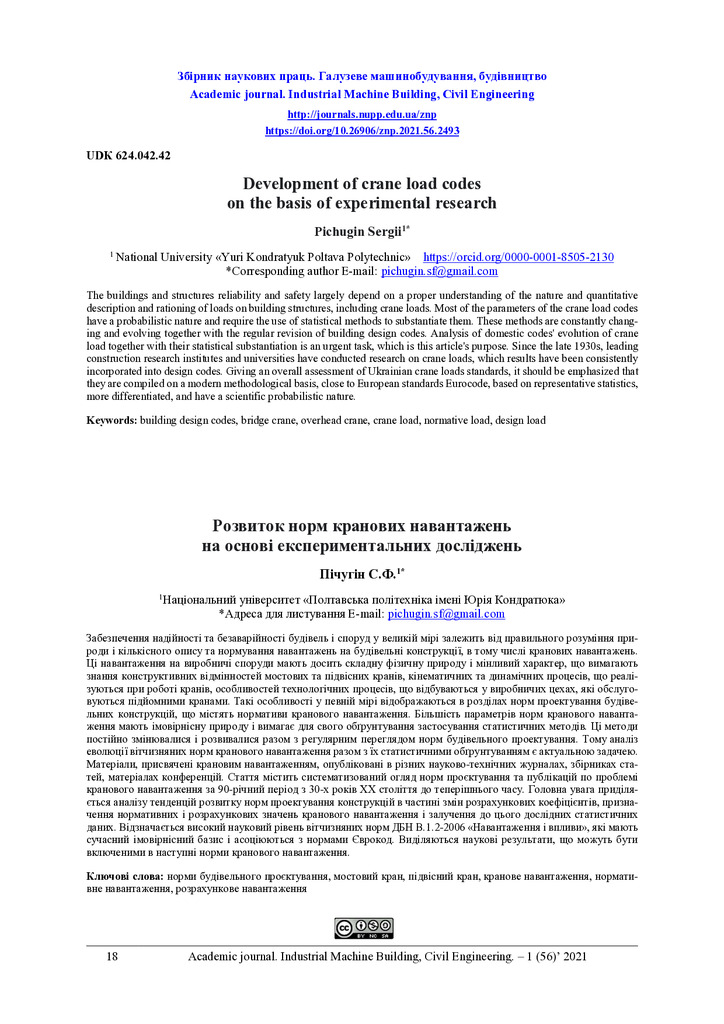 Development of crane load codes on the basis of experimental research