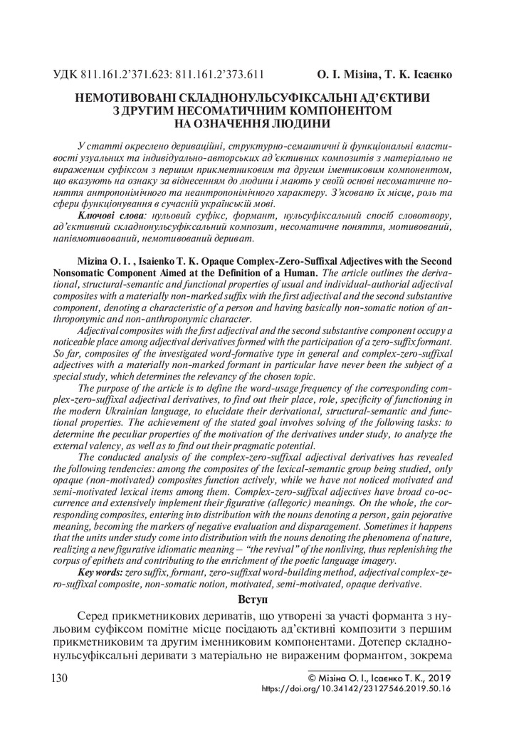 Стаття 2020/05/05Немотивовані складнонульсуфіксальні ад’єктиви з другим несоматичним компонентом на означення людини