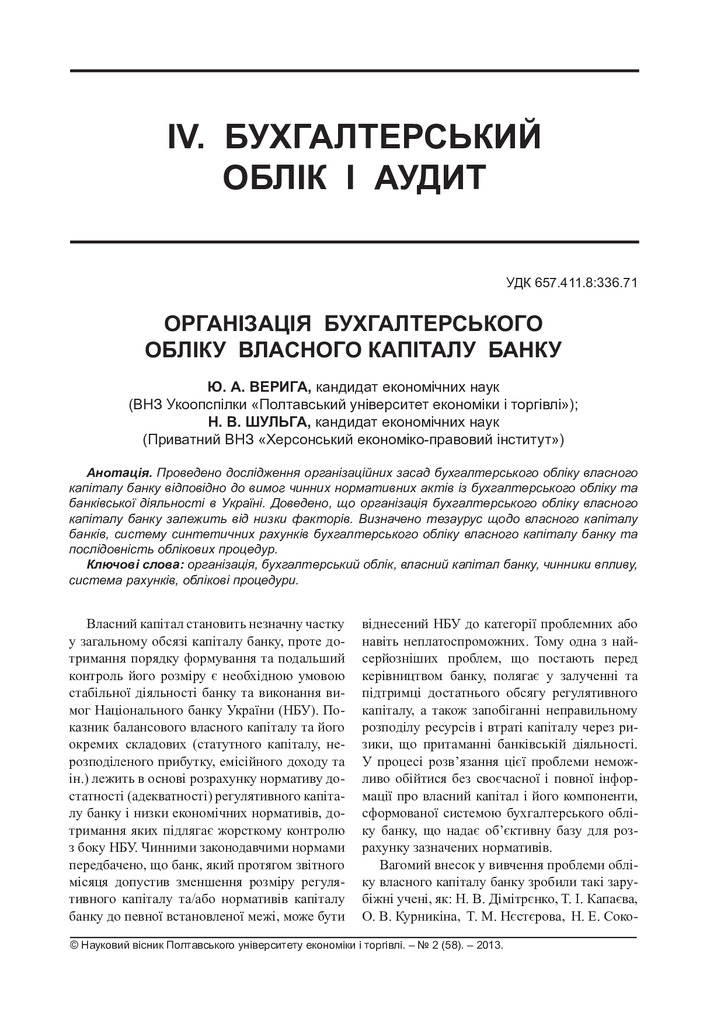 Проведено дослідження організаційних засад бухгалтерського обліку власного капіталу банку відпові...