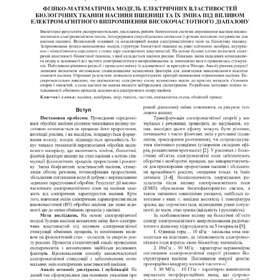 Фізико-математична модель електричних властивостей біологічних тканин насіння пшениці та їх зміна під впливом електромагнітного випромінення високочастотного діапазону