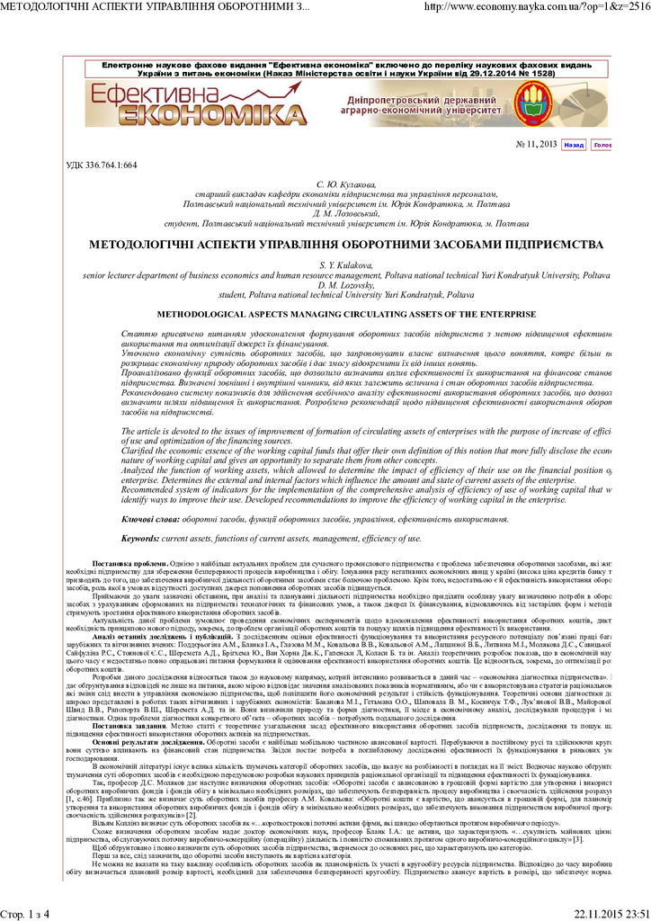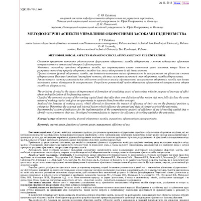 Стаття 2024/04/27Методологічні аспекти управління оборотними засобами підприємства