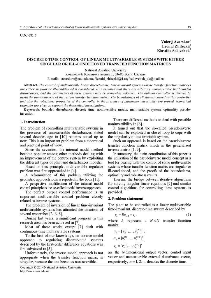 The control of multivariable linear discrete-time, time-invariant systems whose transfer function...