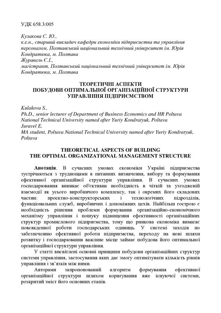 Стаття 2018/05/14Теоретичні аспекти побудови оптимальної організаційної структури управління підприємством