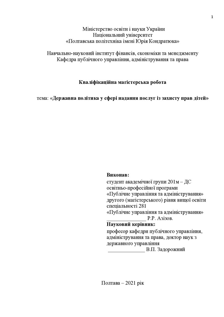 У магістерській роботі розглянуто питання державного управління у сфері захисту прав дітей. Спос...