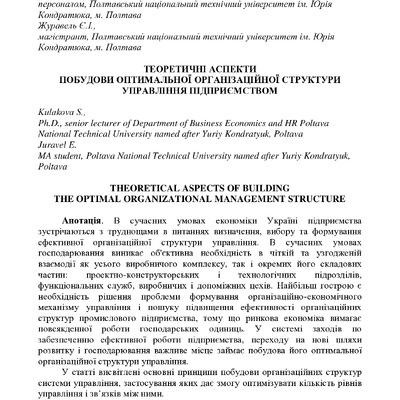 2023/10/20Теоретичні аспекти побудови оптимальної організаційної структури управління підприємством